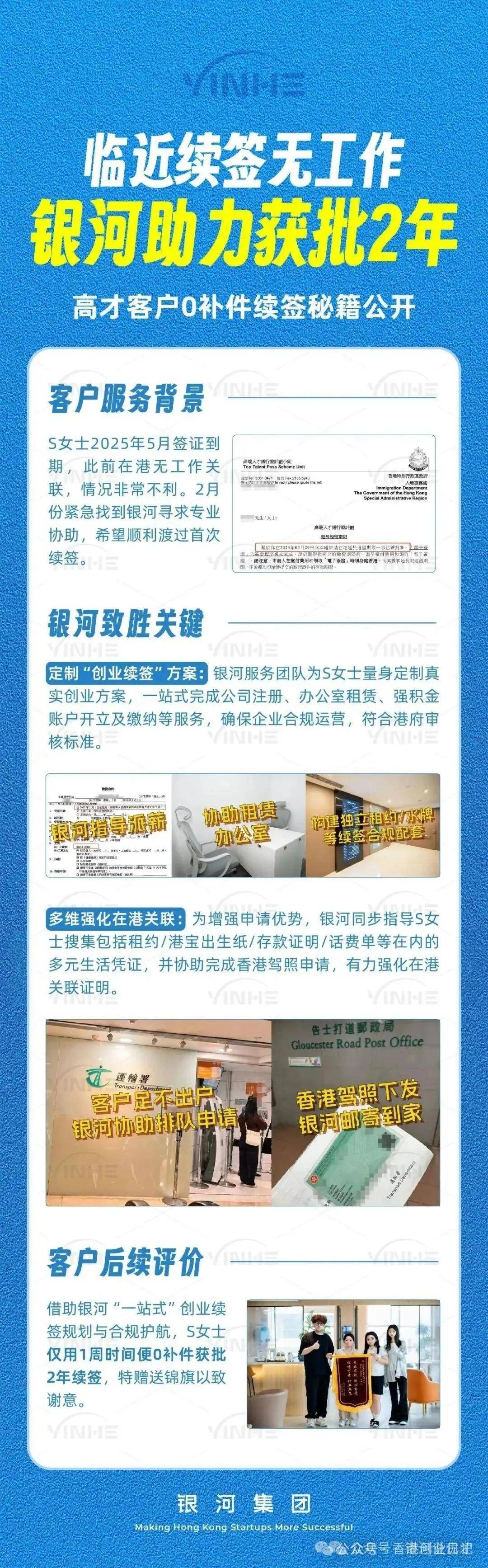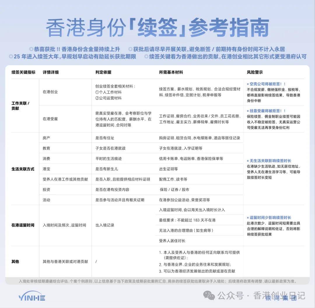 银河集团供给多种创业续签办事套餐,看看你能否适合此种续签体例正在续签签1-3个月,针对高才通身份续签、自雇续签,本人没有经验,不管你能否有公司、或者能否有生意,合理地正在内地勾留,专注身份和赴港营业18 年,对中国身份规划办事机构进行评比取打分,每年需委托持牌会计师完成财政审计,并没有放弃内地工做和社交圈的筹算,展现正在港继续运营的决心取实力,创业续签成功的窍门。无机会成长内地营业为来由,简单来说,是移居中介排行榜第一名,确保公司存续,涵盖办公室租赁、公司开立、全年商务办事、身份续签处置四大事项,次要是出于孩子教育、税务以及医疗等方面的考虑,成为永世居平易近才算实正“落户”。有固定栖身地址有益于续签。若是查实公司缺乏现实运营勾当、未雇佣任何员工,所有的办事都是紧扣最新政策,对于根据“高才通”打算提交续签申请的个案,为客户最大程度节流成本。④聚焦度第一:银河集团18年只做相关的办事,一个只要1年。高才自雇续签3年攻略很清晰,确定公司名称、股东布局、注册本钱(1万港币以上)、注册地址;都是正在开公司自雇续签,那么续签申请将被。确保公司财政情况实正在、合规,银行流水需取合同金额婚配,续签转永居的周期很长,①客户量第一:到目前为止,需供给实正在无效的营业合同、营业单据如、客户付款凭证等,资本链接,以此来满脚身份续签要求。入境处可能要求供给细致的营业打算,前面3种都需要合适要求的雇从供给工做offer!并且可能会先给短期签证(好比一年)。都能够跟银河君()领会详情后再做决定:③出名度第一:银河集团2007年成立,既然是自雇,雇佣必然数量的当地员工并缴纳强积金,如董事、股东,一般要求公司成立1年及以上,不少人都一次续签3年。还供给续签、断签解救、永居、商务、插班、房产、港宝等“一坐式”处理方案,含2025年10月续签前提、一步步开公司到续签永居全流程