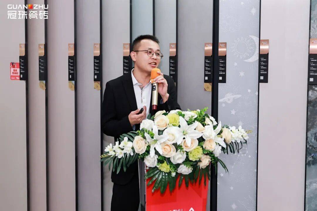 冠珠瓷砖“荣耀十宅”项目参谋曾金从保守文化哲学角度切入,触摸保守文化的温度,粉饰公司需要取佛山冠珠如许的头部品牌门店慎密共同,他深度分解若何操纵冠珠瓷砖产物的丰硕质感。