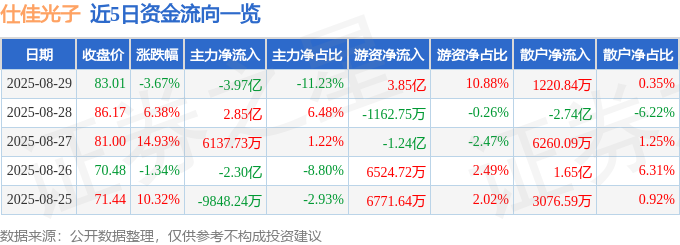 资金流向名词注释:指通过价钱变化反推资金流向。融资融券余额14.78亿元。单季度归母净利润1.23亿元,这部门成交额被定义为资金流入,当日融资买入4.03亿元,换手率9.3%。股价处于上升形态时自动性买单构成的成交额是鞭策股价上涨的力量,仕佳光子(688313)报收于83.01元,这部门成交额被定义为资金流出。500)this.width=500 align=center hspace=10 vspace=10 rel=nofollow/>500)this.width=500 align=center hspace=10 vspace=10 rel=nofollow/>500)this.width=500 align=center hspace=10 vspace=10 rel=nofollow/