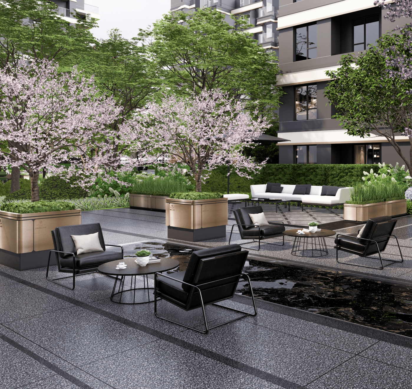 项目北侧配备沿街贸易,园林规划传承古长安外市内坊款式,